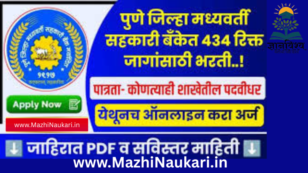 🏦 “पुणे जिल्हा मध्यवर्ती सहकारी बँक भरती 2025” – पुणे जिल्हा मध्यवर्ती सहकारी बँकेत 434 जागांसाठी भरती! आजच अर्ज करा ✅